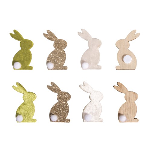Dřevená dekorace - Velikonoční zajíčci 8ks