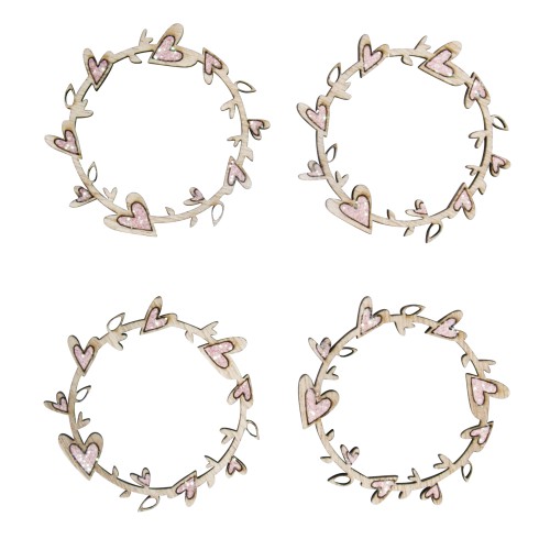 Dřevěné přízdoby - "Srdíčkový věnec", 5,7cm ø, 4 ks
